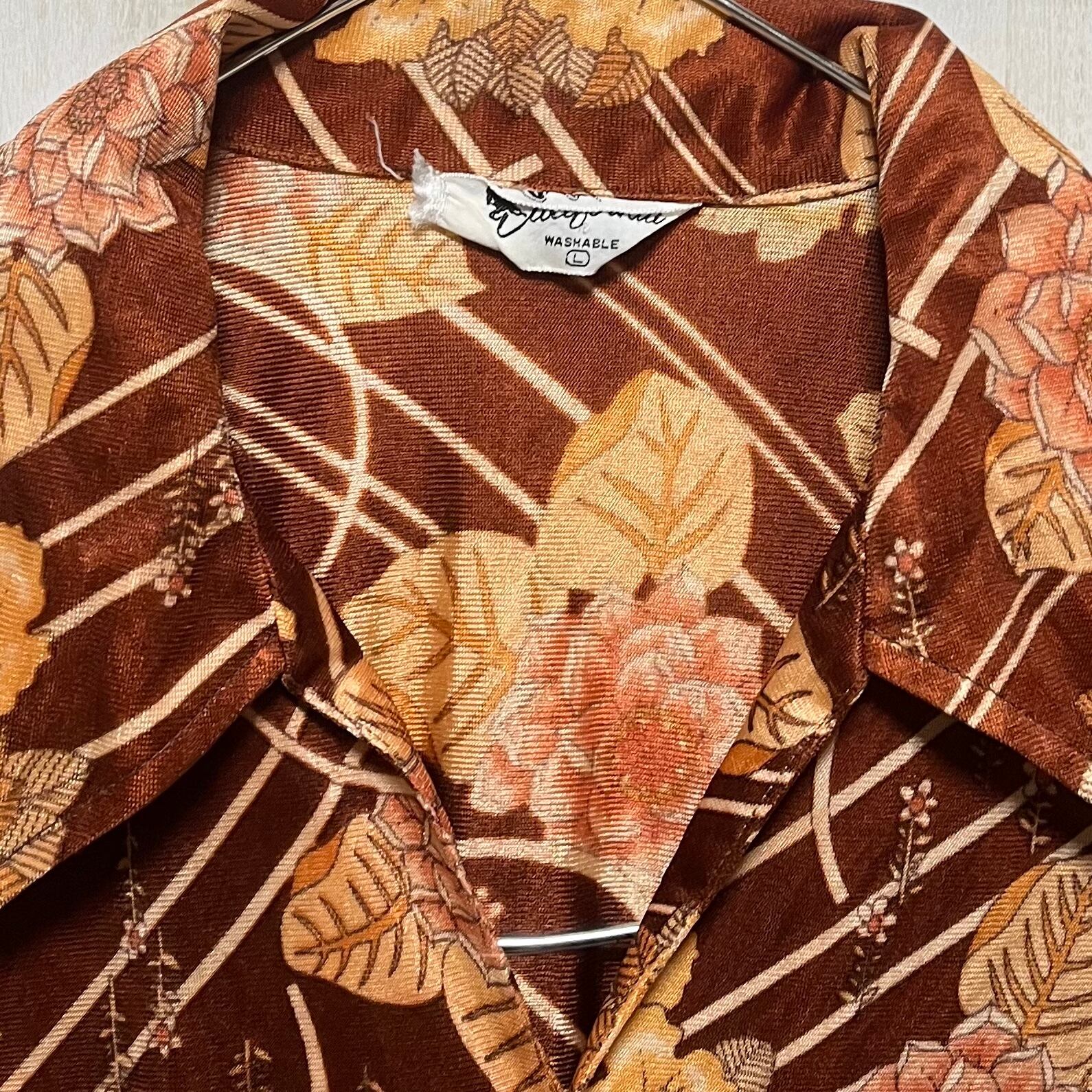 【size L】70s オールド レーヨン レトロシャツ オープンカラー シャツ