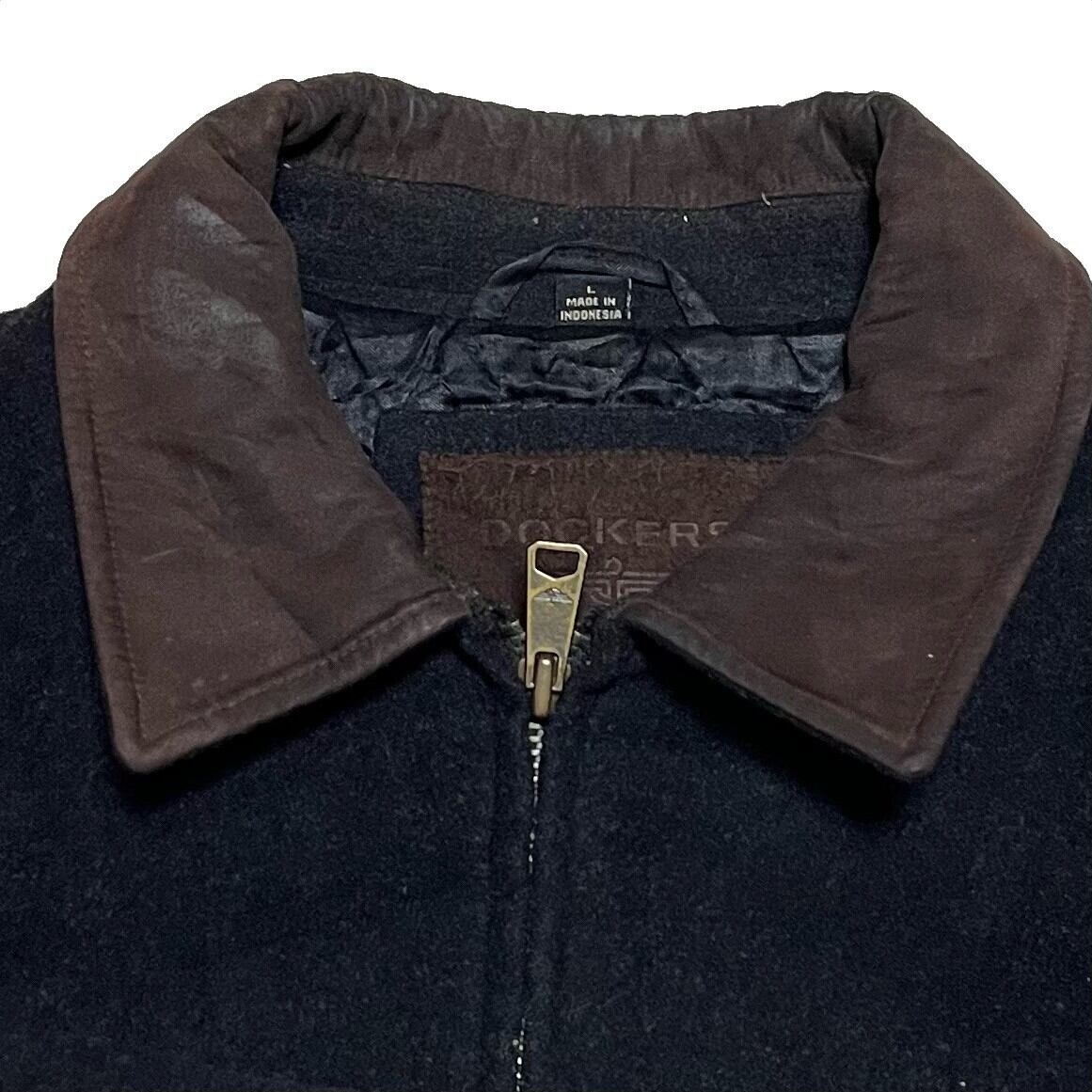 【size L】DOCKERS ドッカーズ 襟レザー ウール ブルゾン