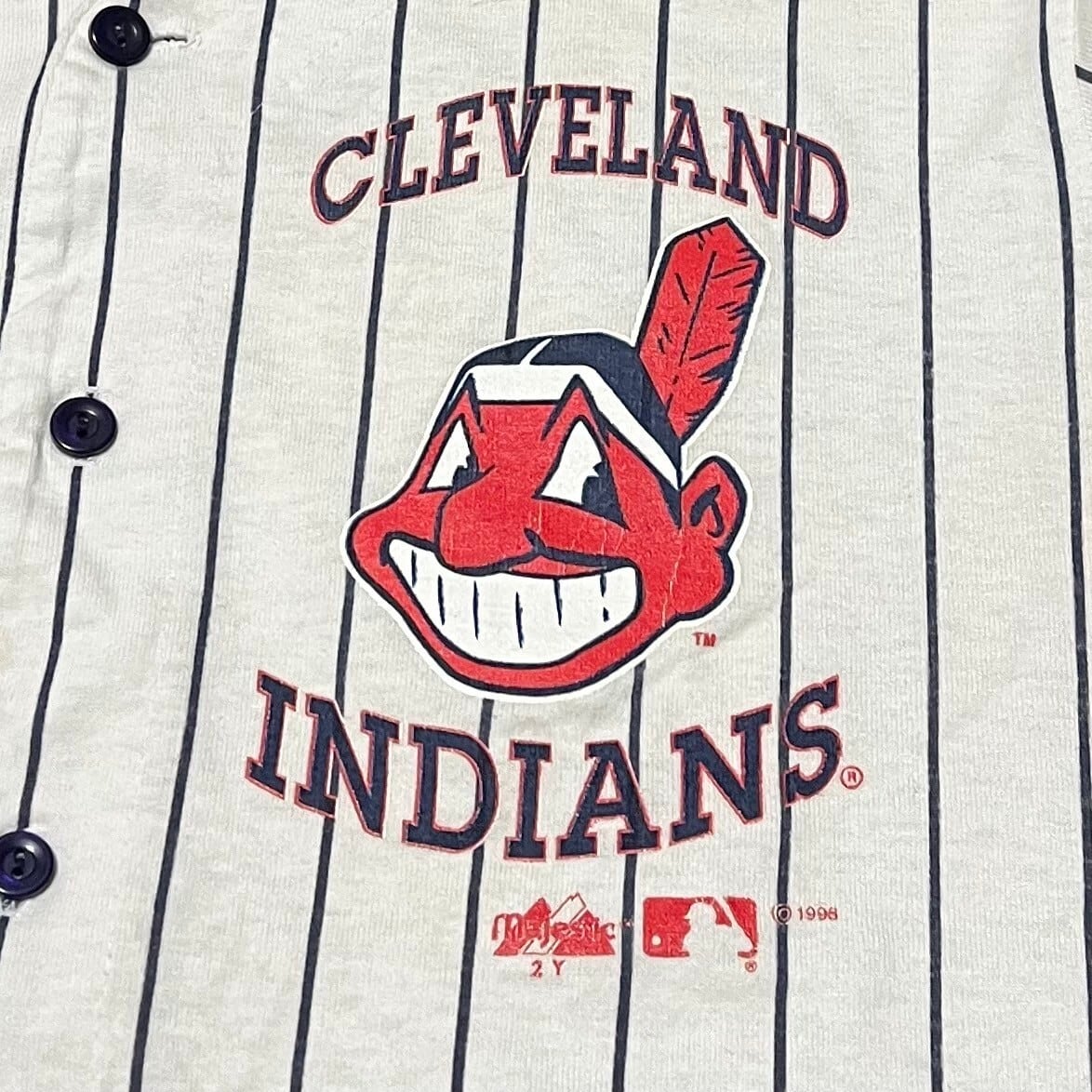 【XL 小さめ】90s USA製 クリーブランド インディアンス ベースボールシャツ