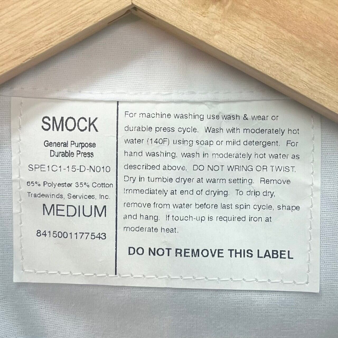 GENERAL PURPOSE SMOCK(ジェネラル パーパス スモック)という名称の米軍施設の食品取扱者、検査員、事務員、医療などの様々な場面で使用する多目的なオープンカラーの半袖シャツです。